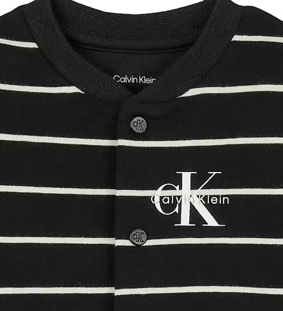 Elegant Calvin Klein heldragt i sort sweat med hvide striber og et diskret logo ved brystet.