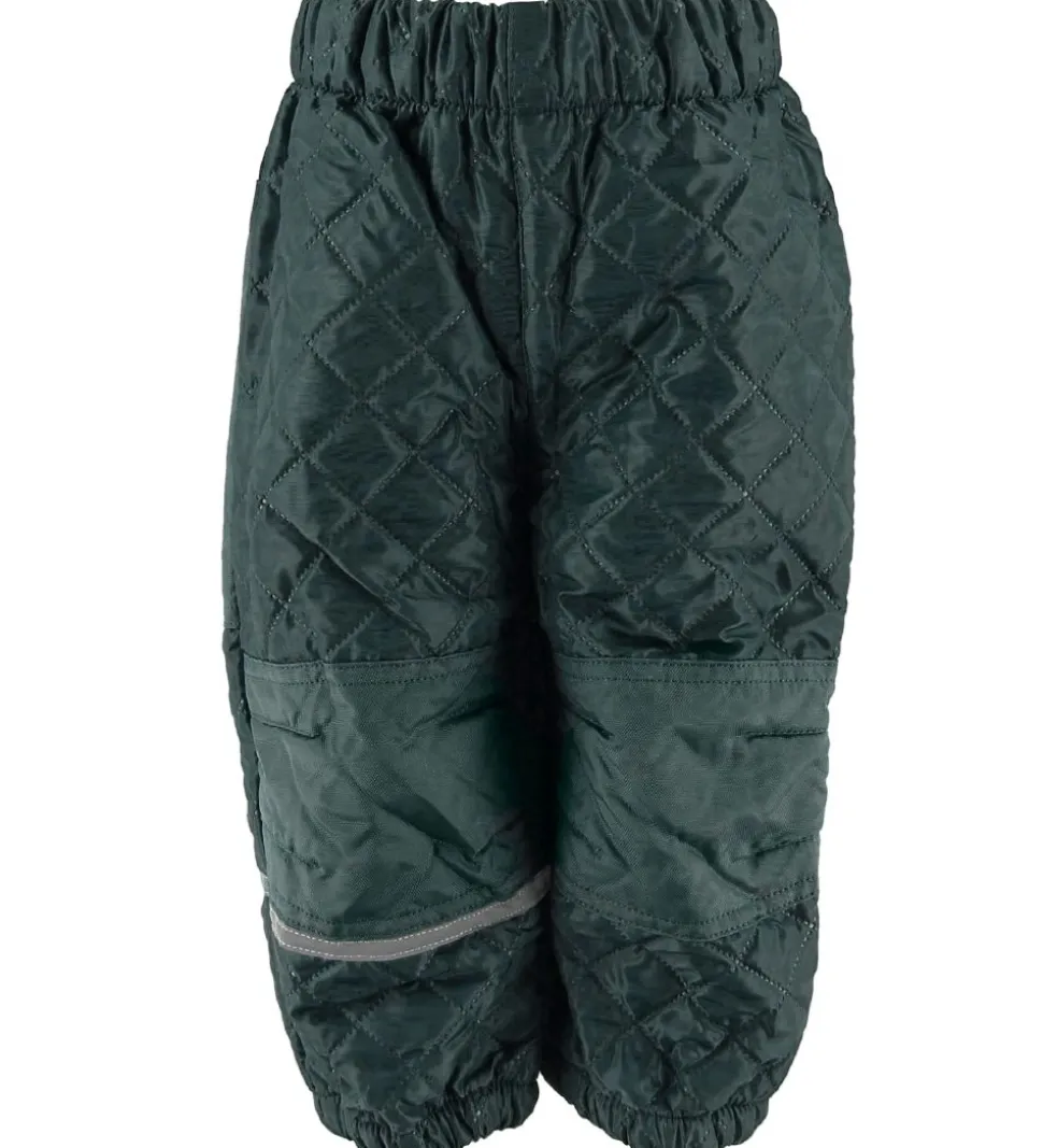 Smart CeLaVi termotøj bestående af en jakke og et par bukser i mørkegrøn med et flot quiltet design.