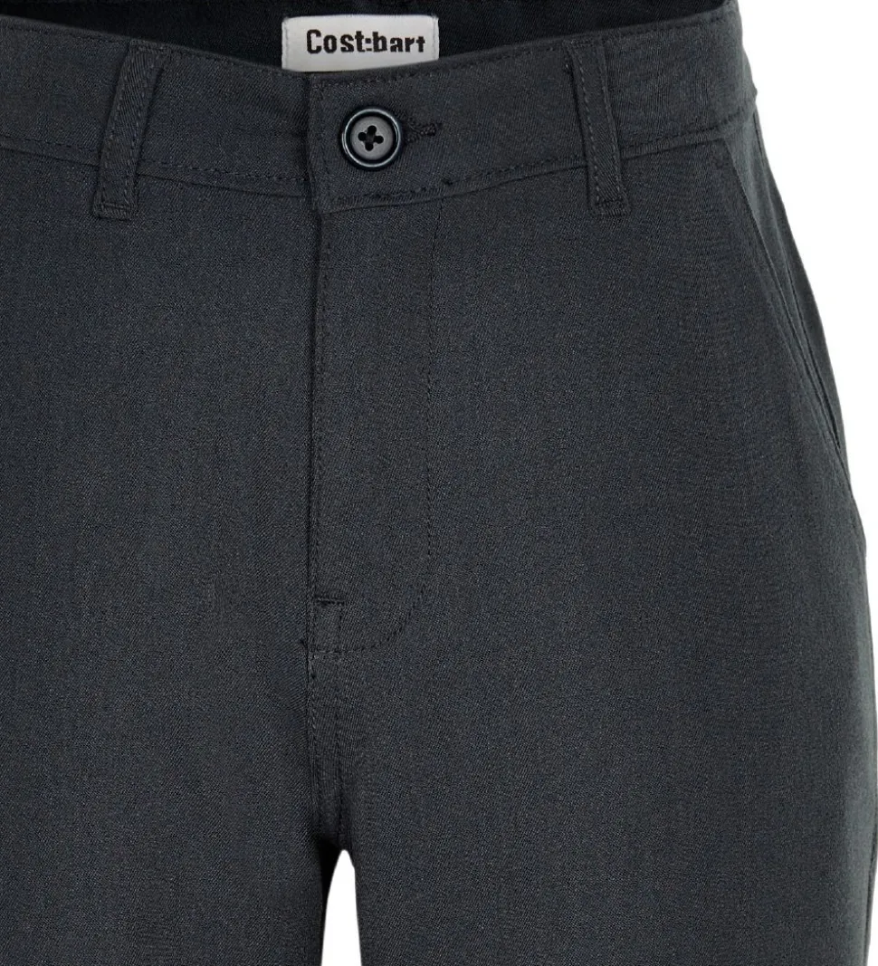 Cost:Bart bukserne har en justerbar elastik i taljen, og de kan åbnes fortil med en sort knap og en lynlås. I taljen er der bæltestropper. Habitbukserne har skrå lommer fortil og to vandrette lommer bagpå.