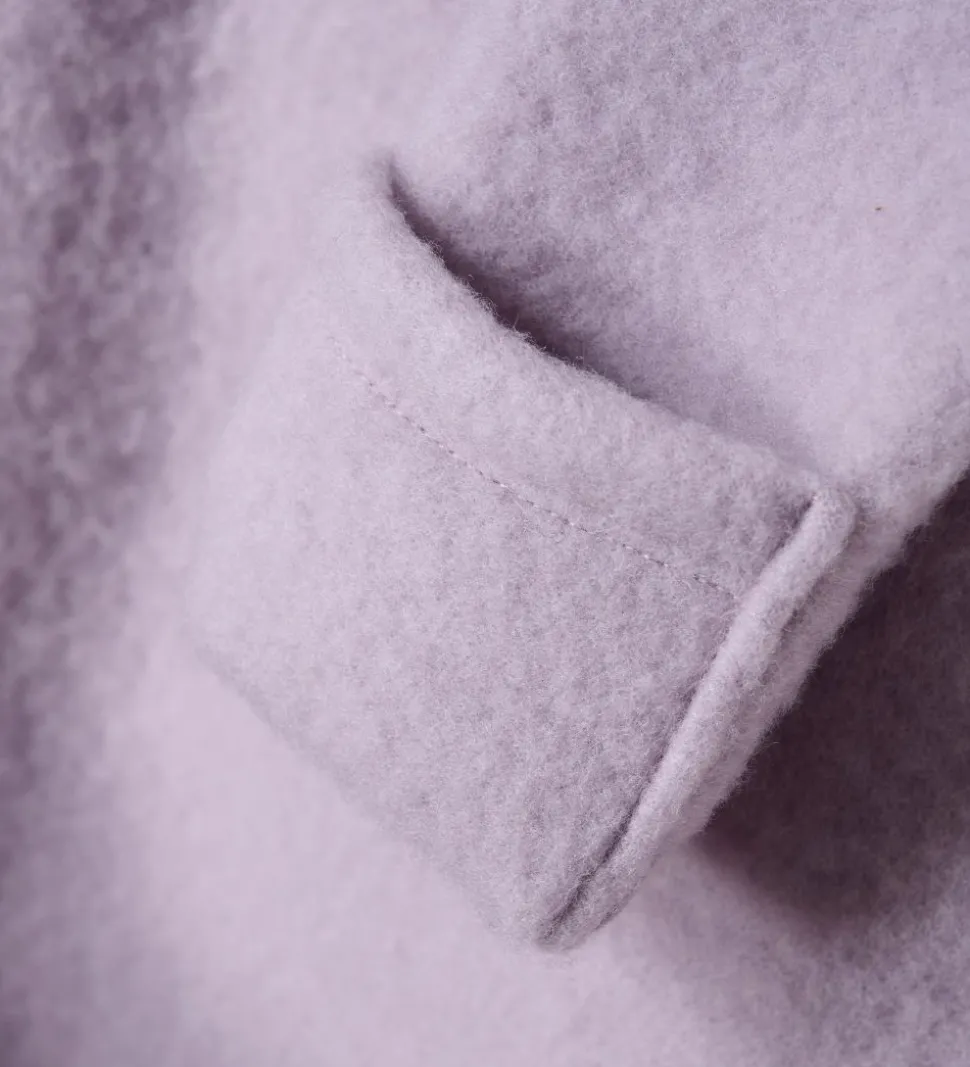 Lækker Fixoni køredragt i lilla, filtet uld med to søde ører på hætten.