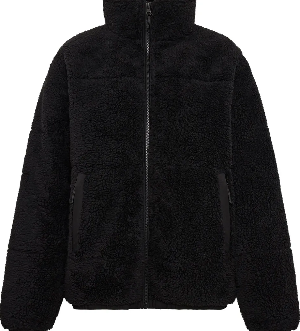 Flot Grunt fleecejakke i klassisk sort teddyfleece. Fleecejakken har en høj krave og lange ærmer, der giver et stilrent udtryk.