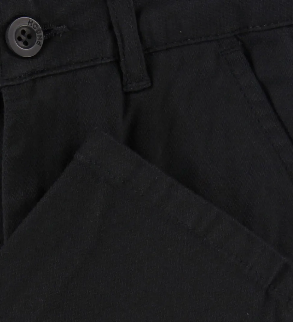 Flotte Hound bukser i sort i en fastvævet, strækbar kvalitet. Bukserne har en flot sildebensvævning.