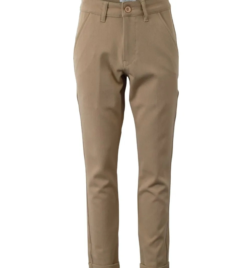 Hound bukserne har en bred kant i livet med en indsyet, justerbar elastik, der indstilles på indersiden. Fortil er der to lommer, og bagpå er der to dekorative snydelommer. I benkanterne er der fine, fastsyede opsmøg. Bukserne åbnes fortil med en knap og en lynlås, og der er praktiske bæltestropper rundt i livkanten.