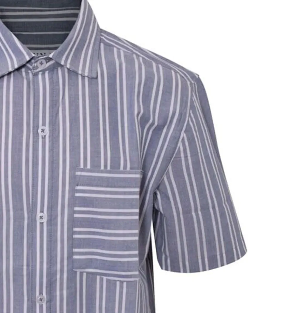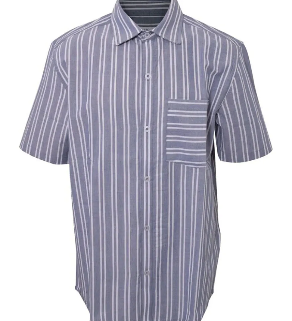 Fin Hound skjorte i støvet blå med hvide, lodrette striber.