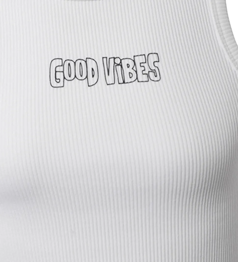 Smart Hound tanktop i hvid med et cool “GOOD VIBES” print på fronten i sort. Denne tanktop har en flot ribstruktur og er perfekt til varme dage.