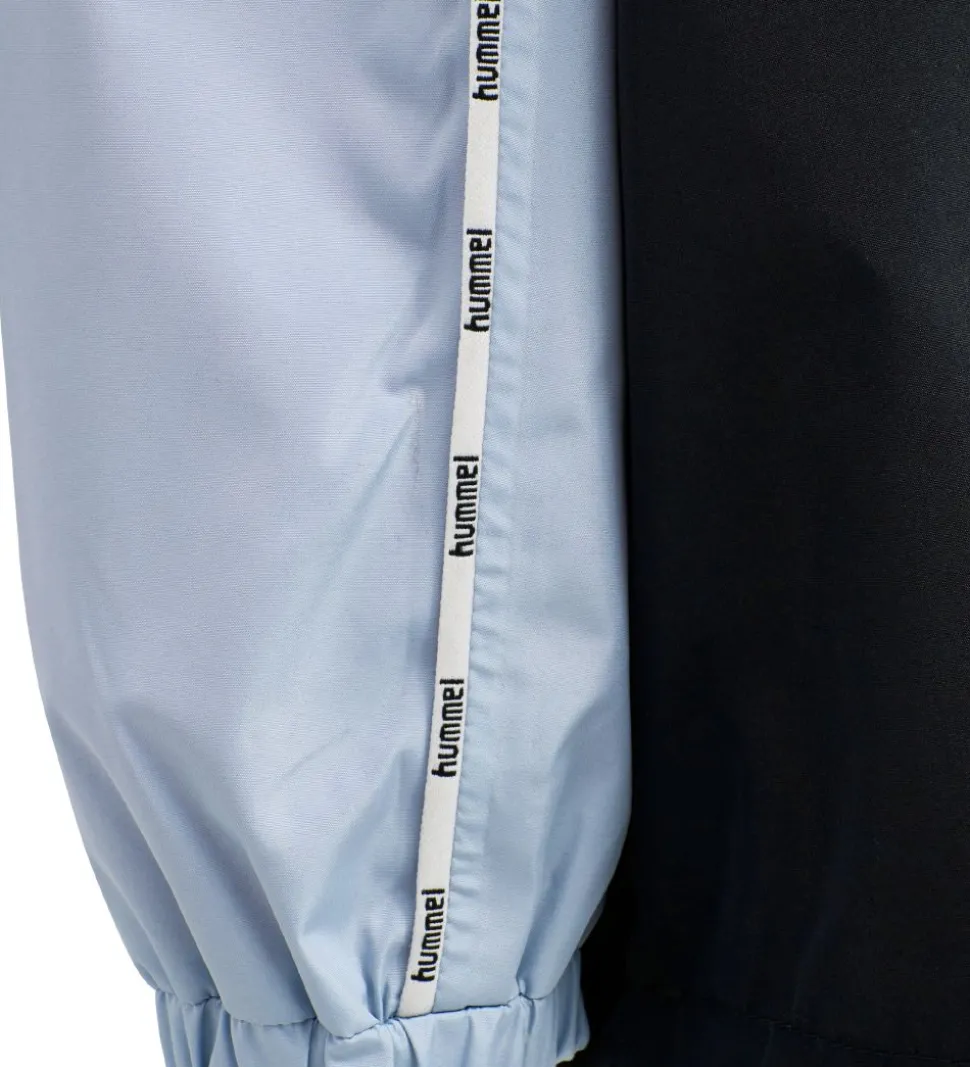 Hummel sommerjakken har en aftagelig hætte, der fæstnes med trykknapper langs den mellemhøje halsåbning. Hætten har en elastikkanter i siderne. Jakken har lange ærmer med hvide logo-pipings på undersiden og i armåbningerne er der praktiske elastikkanter.