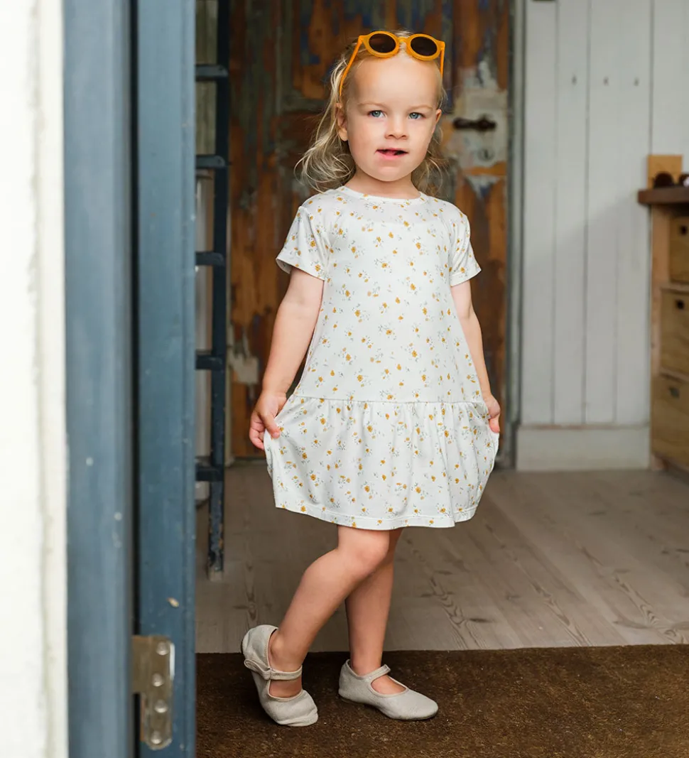 Natkjolen er kortærmet med rund halsudskæring og er i en løs pasform med skørt, der skaber en let fald.