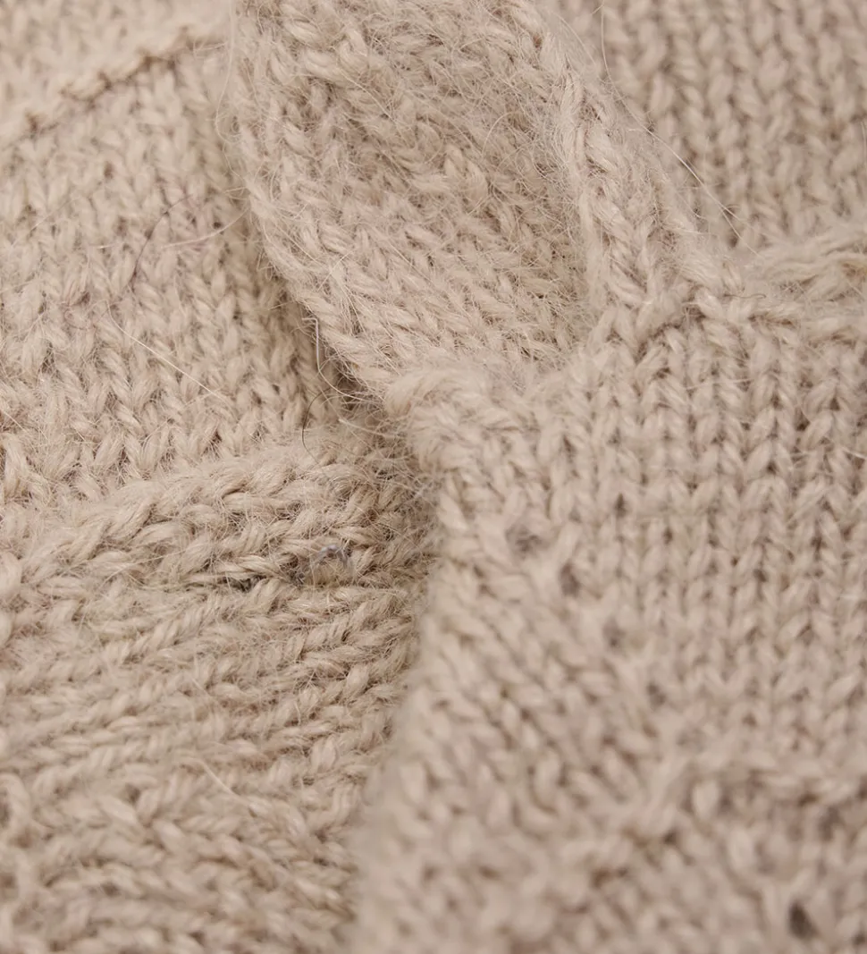 Flot Huttelihut babyhjelm strikket af blødt alpakauld i rosa og med søde ører på toppen.
