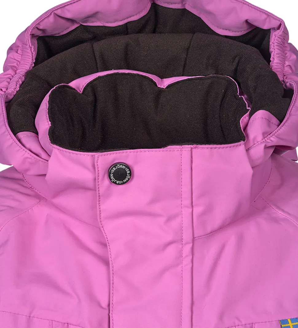 Flot Isbjörn Of Sweden flyverdragt i pink og sort. Flyverdragten har hvide logoprint på venstre bryst og hætten samt smarte refleksprint på lænden, begge skuldre og ankler.