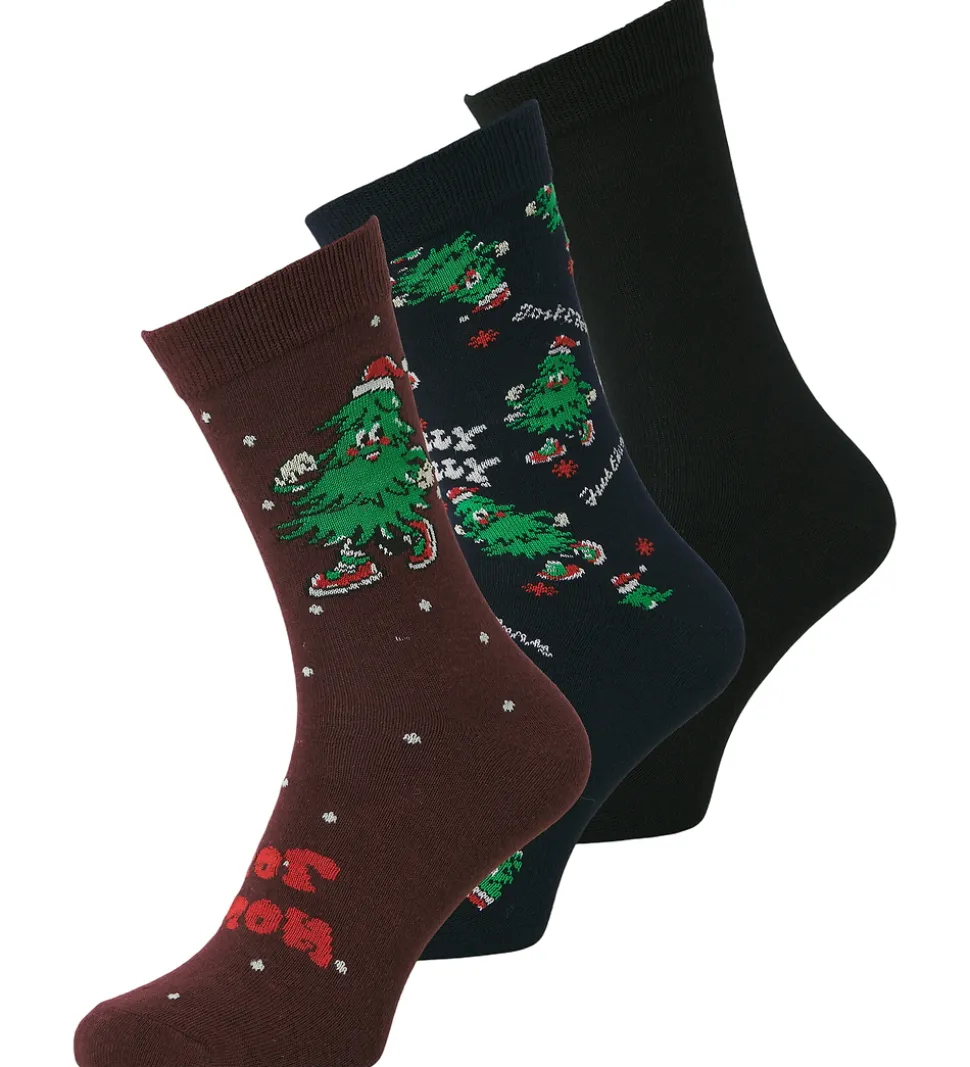 Herlig Jack & Jones gaveæske med tre par strømper. Alle par har fine julemotiver i mørkerøde, navyblå og grønne nuancer. Jack & Jones strømperne har en elastisk ribkant øverst for en god pasform.