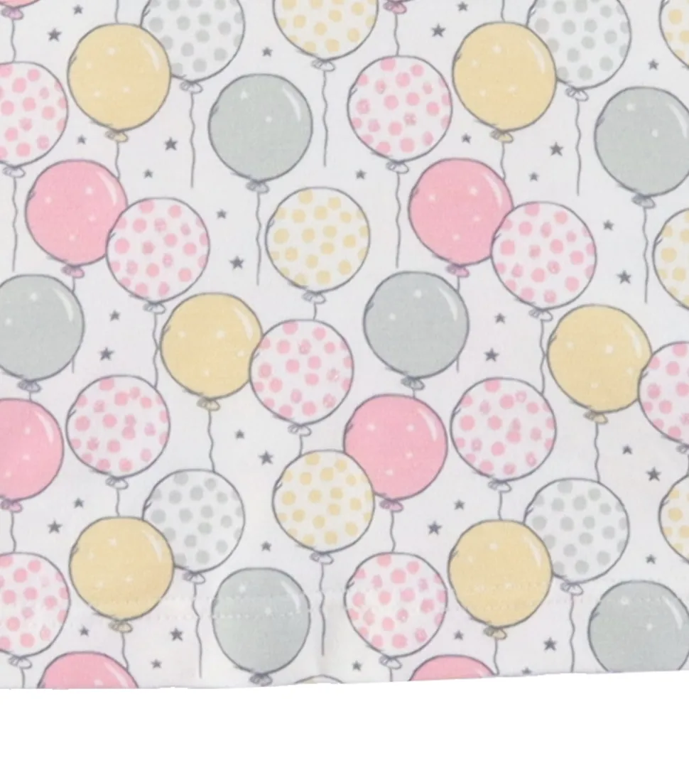 Skønt Joha nattøj 2-delt bestående af en nattrøje og et par natbukser. Nattrøjen er i hvid med et farverigt ballonprint i rosa, gul og grøn med få rosa glimmer prikker, mens bukserne har en enkel design i ensfarvet rosa. Joha kombinerer komfort og stil i dette nattøj.