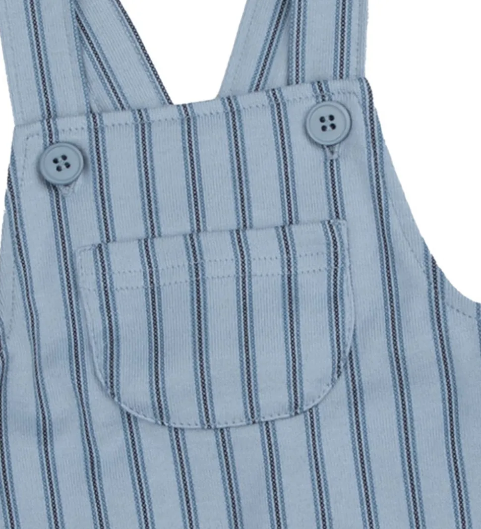 Sommerdragten har korte ben og har brede stropper som åbnes fortil med knapper med to indstillinger. Dragten har en fin åben lomme fortil og kan åbnes mellem benene med trykknapper, ideel til varme dage.