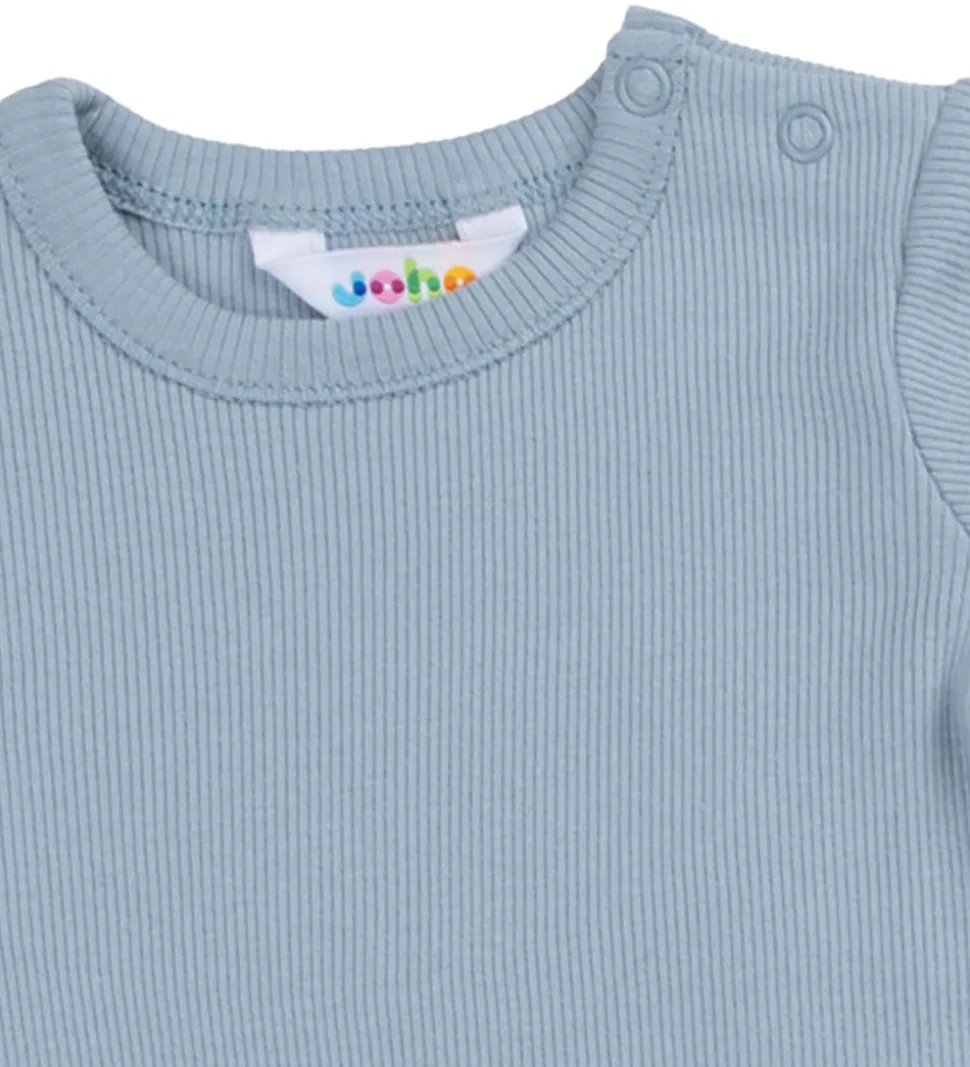 Lækker Joha sommerdragt med korte ærmer i en støvet blå nuance med en fin ribstruktur.