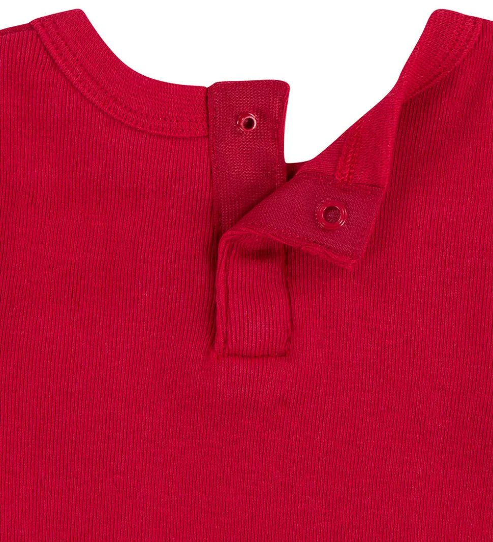 - Sommerdragt i rød med et lille hvidt logoprint på venstre bryst.