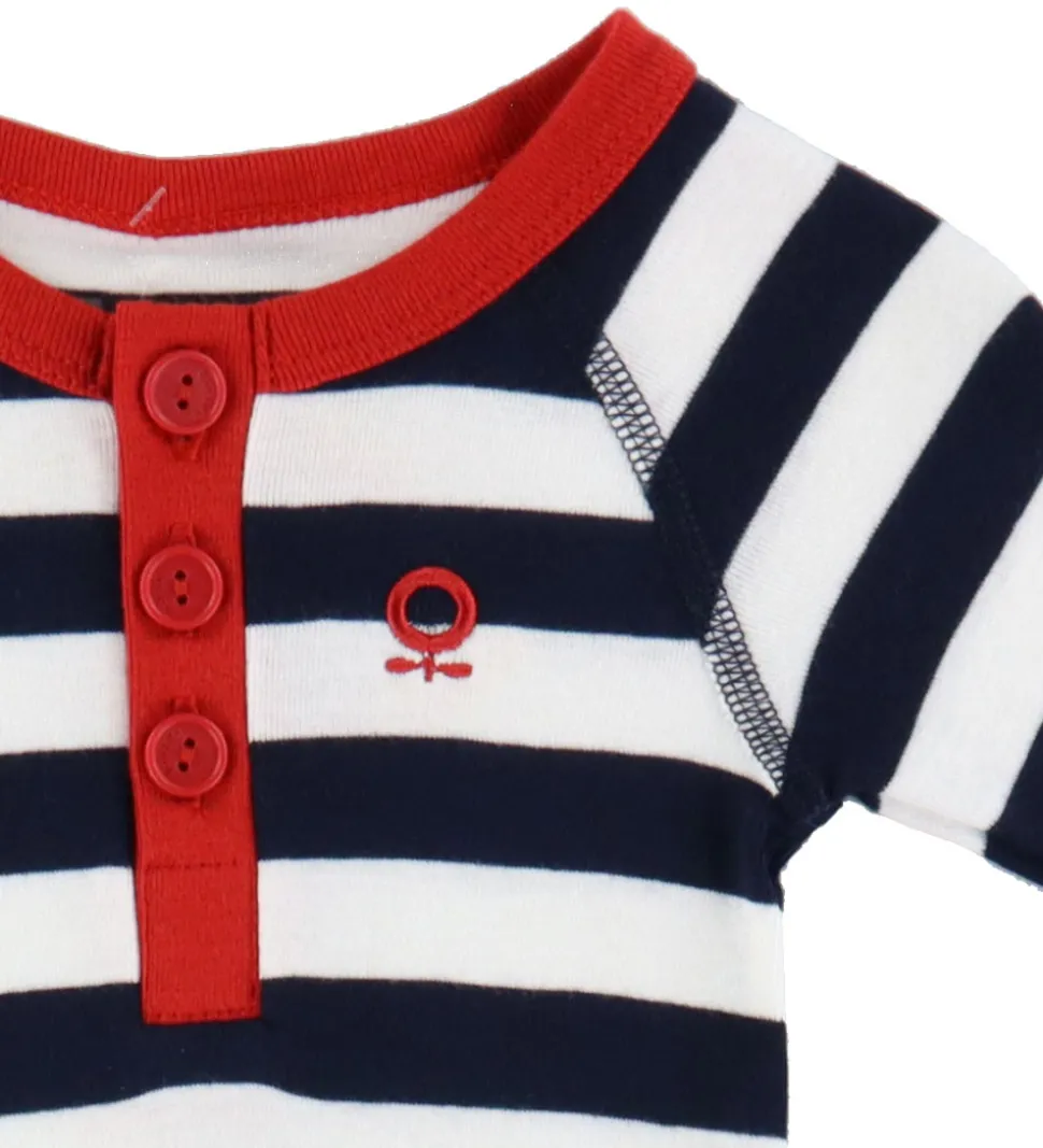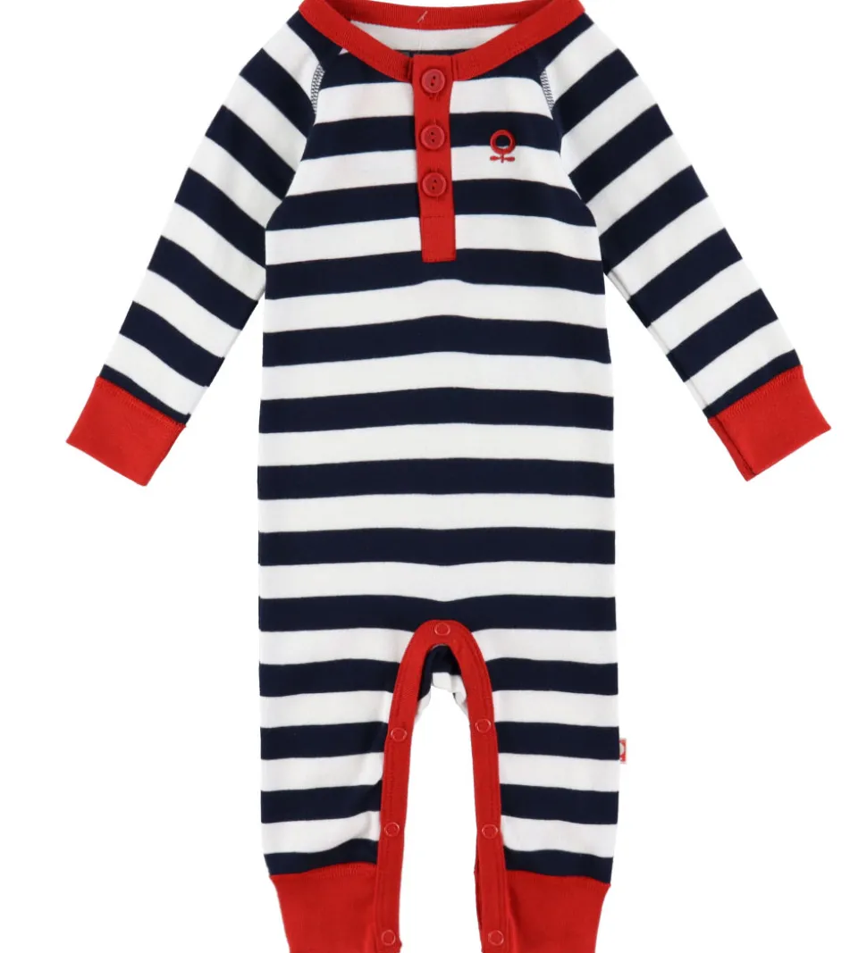 Smuk Katvig heldragt med lange ærmer i striber i hvid og navy.
