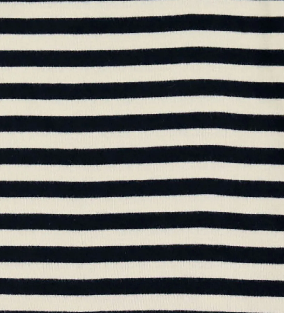 Skønne Katvig leggings med vandrette striber i navyblå og hvid. Katvig leggingsene har en elastisk talje, der sikrer en god pasform. Benene afsluttes med brede ribkanter.
