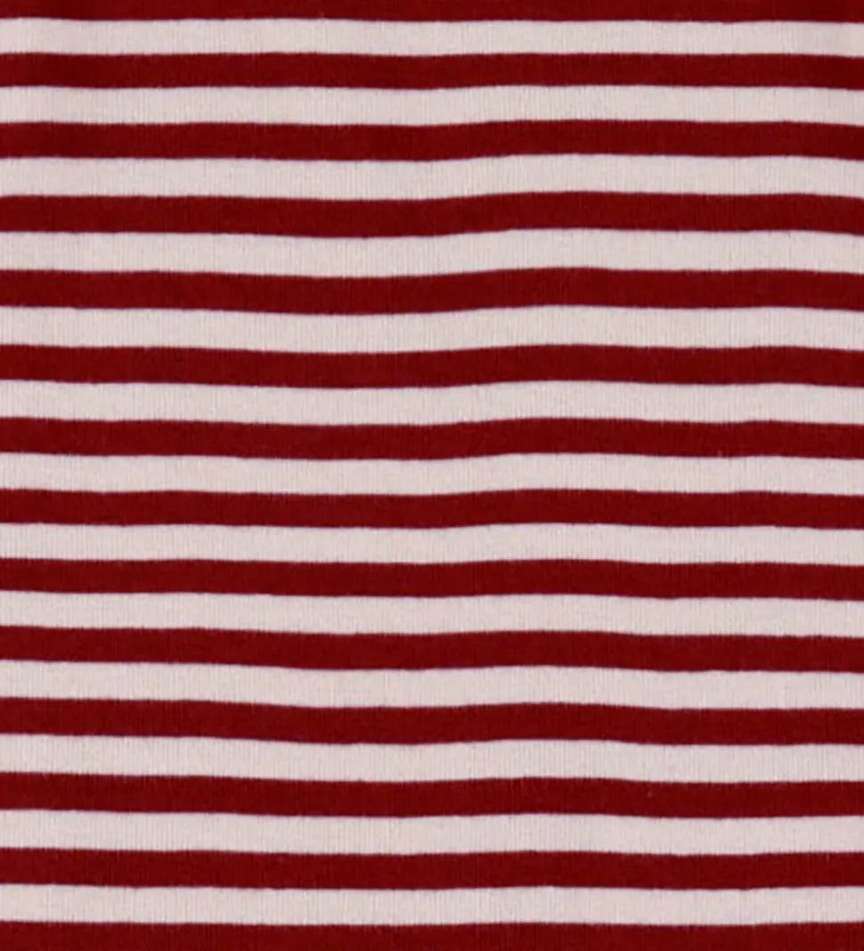 Skønne Katvig leggings med vandrette røde og hvide striber. Katvig leggingsene har en elastisk talje og ensfarvede, brede ribkanter ved anklerne.
