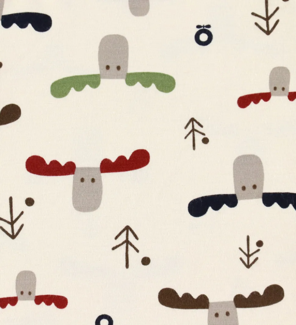 Charmerende Katvig leggings i råhvid med alloverprint af elgehoveder og logoer i forskellige farver. Leggingsene har en elastisk talje og brede ribkanter ved anklerne. De er fremstillet af blødt bambus viskose.