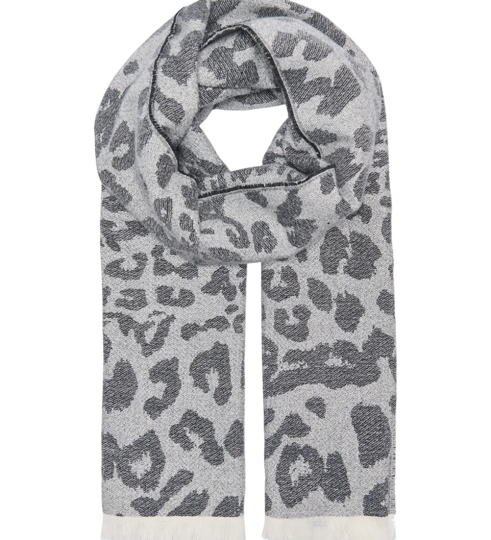Smart Kids Only tørklæde i sort og grå med et flot leopardmønster. Kids Only tørklædet har fine frynser langs kanterne, der giver et ekstra pift til designet. Tørklædet er lavet i en super blød, strikket kvalitet.