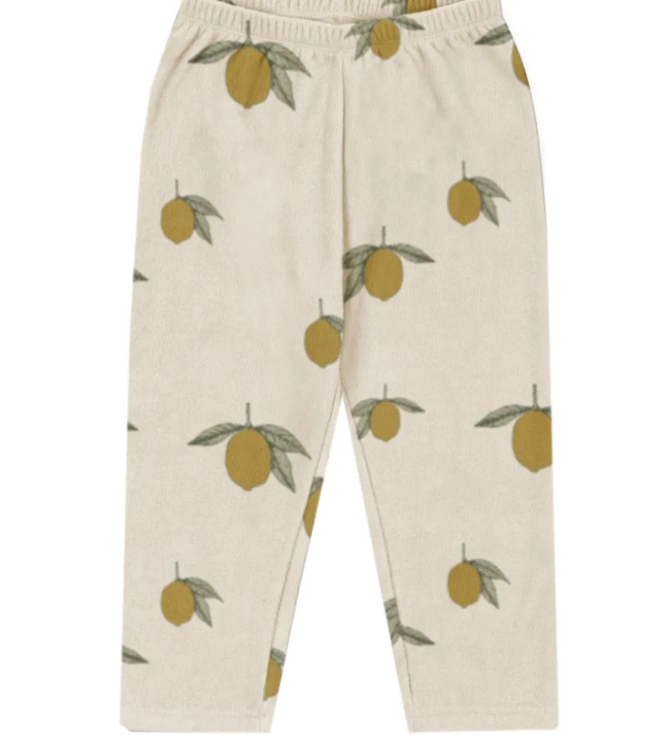 Fine Konges Sløjd fleecebukser i beige med et allover print af citroner.
