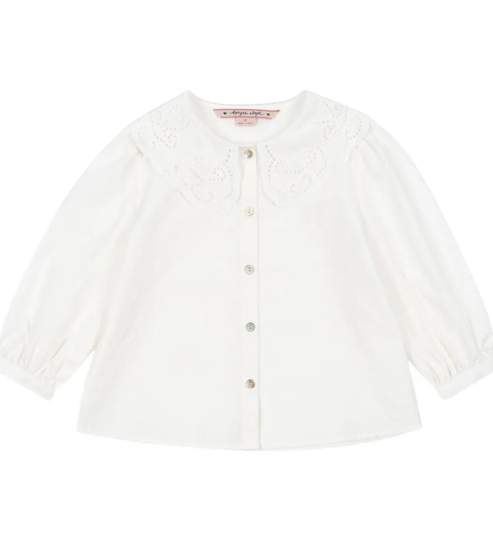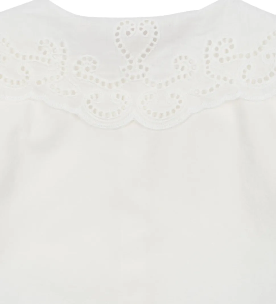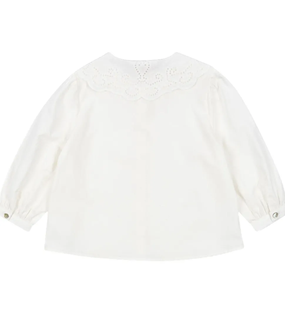 Elegant Konges Sløjd skjorte i en delikat, hvid nuance. Skjorten har en smuk, broderet krave. Konges Sløjd skjorten har knapper langs fronten og lange ærmer med en let elastik ved håndleddene. Pasformen er løs og behagelig.