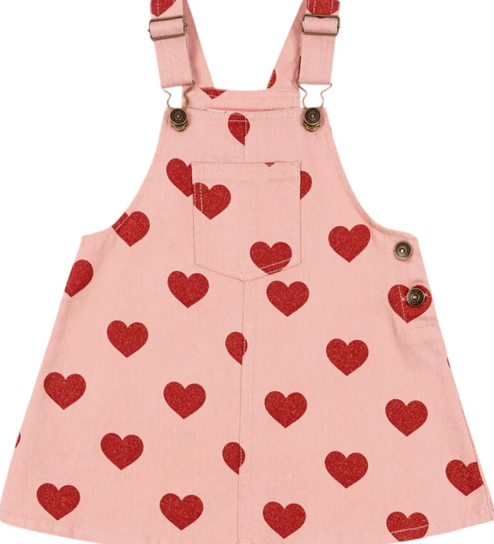 Charmerende Konges Sløjd spencer i lyserødt denim med røde hjerter med glimmer. Spenceren er lavet i en fastvævet kvalitet.