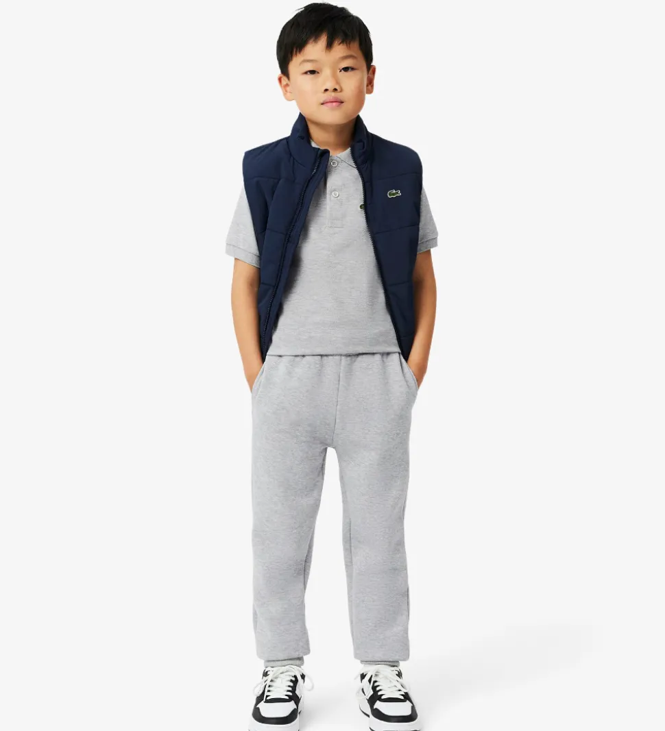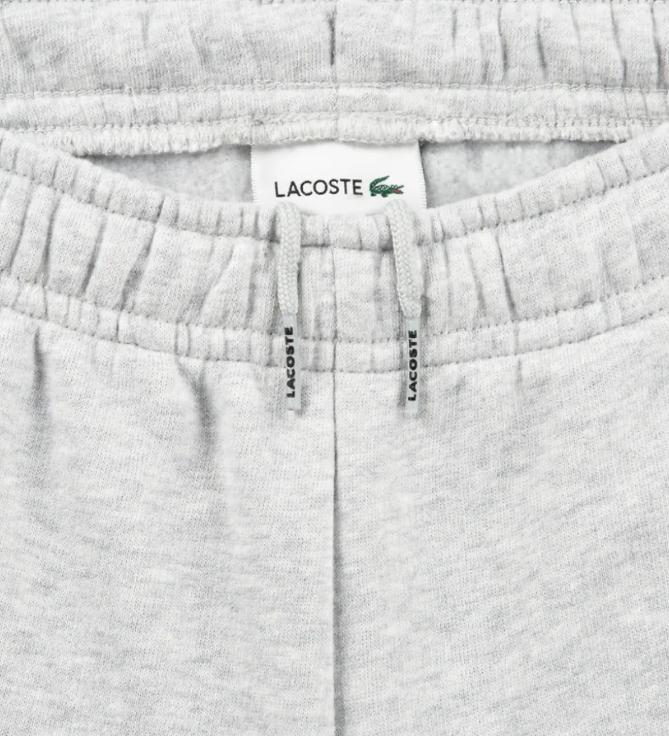 Stilfulde Lacoste sweatpants i en lys grå nuance med en lille broderet krokodillelogo på hoften. Sweatpantsene har en elastisk talje, som kan strammes ind på indersiden med en snøre, og der er ribkanter ved anklerne. I siderne er der praktiske lommer, og på indersiden har sweatpantsene blødt, børstet bomuld.