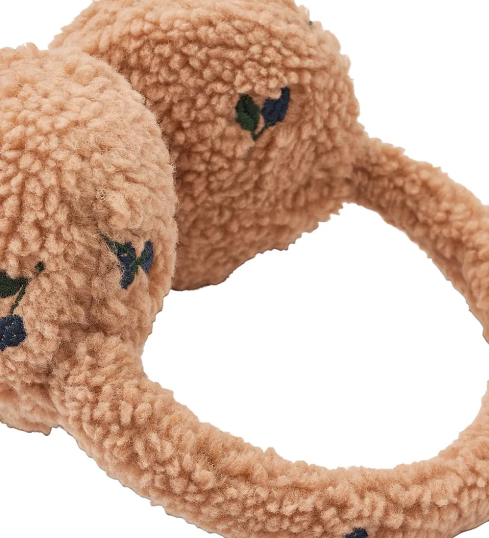 Fine Liewood ørevarmere i rosa teddyfleece med broderede brombær.