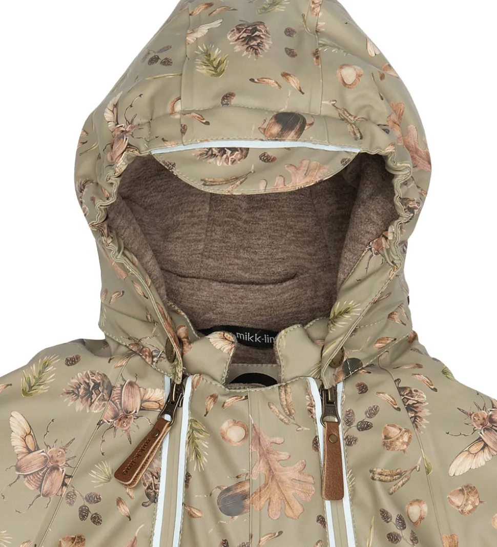 Fin Mikk-Line flyverdragt i lysegrøn PU med print af insekter, blade og andre naturmotiver. Flyverdragten har praktiske refleksdetaljer.