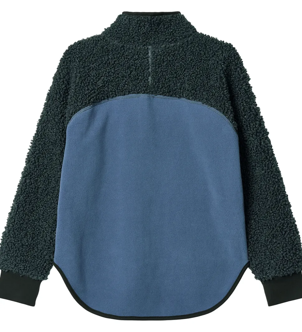 Stilfuld Molo fleecejakke i en kombination af blødt fleece og teddyfleece i forskellige blå nuancer. Molo fleecejakken har en behagelig høj krave og lange ærmer. Fleecejakken lukkes med en lynlås foran, som har en praktisk hagebeskytter. Fleecejakken har en enkelt åben lomme i siden.