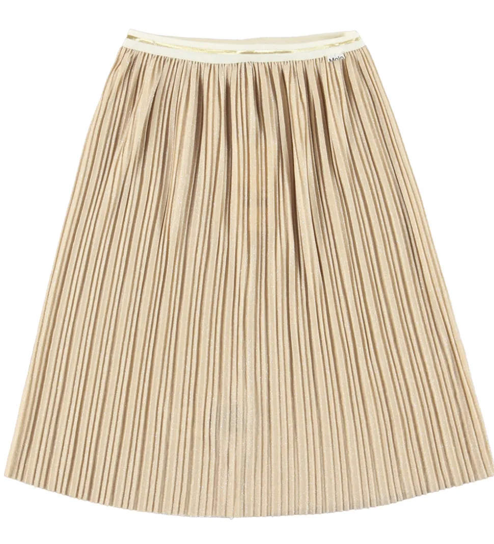 Elegant nederdel fra Molo med fint plissemønster. Denne nederdel tilføjer et stilfuldt touch til enhver garderobe og kan nemt styles til forskellige anledninger. Den bløde elastik i taljen sikrer en komfortabel pasform. Giv dit barn en fashionable mulighed med Molo.