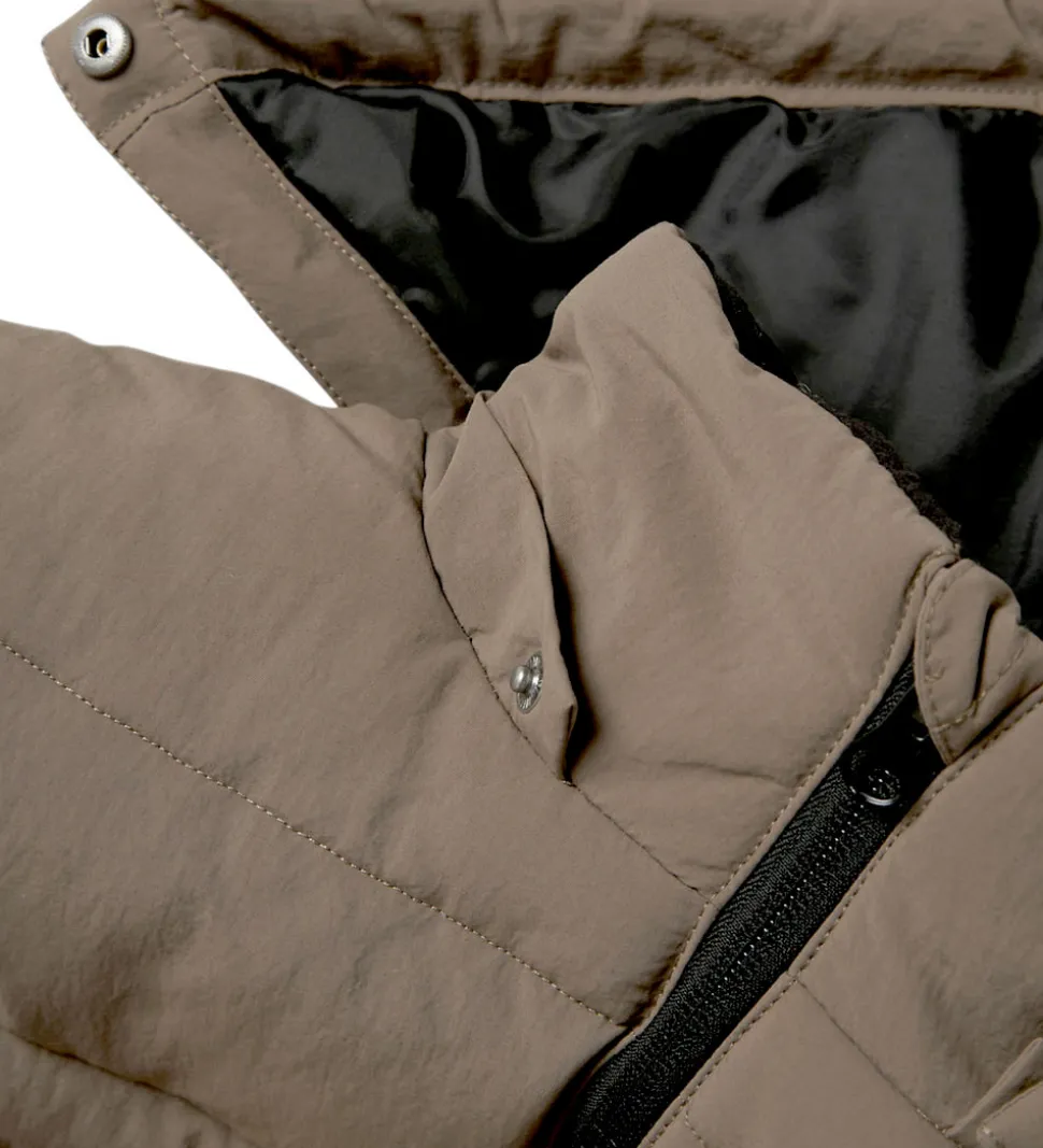 Stilren Name It dynejakke i en flot beige nuance. Dynejakken er designet med et enkelt og moderne look, der inkluderer en aftagelig hætte samt lange ærmer med behagelige ribkanter i sort.
