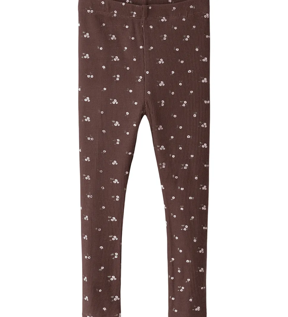 Elegante Name It leggings i en mørkelilla nuance med et delikat mønster af små blomster. Name It leggingsene har en elastisk talje og en lækker ribstruktur, der sikrer en behagelig pasform.
