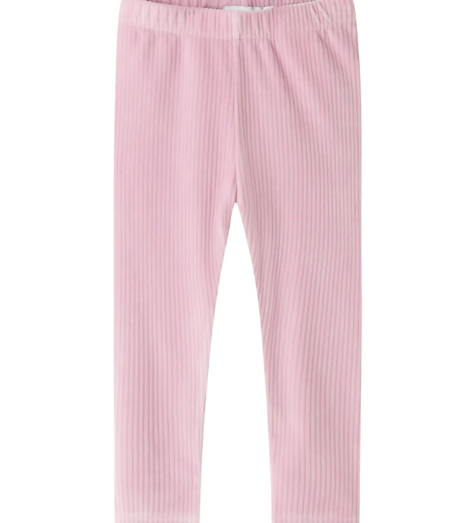 Skønne Name It leggings i rosa velour med stribet struktur. Name It leggingsene har en elastisk talje, der sikrer en god pasform.