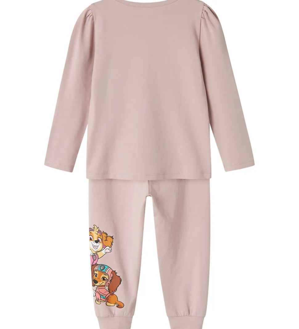 Charmende Name It nattøj bestående af en natbluse og et par natbukser i støvet rosa med print af figurer fra Paw Patrol.