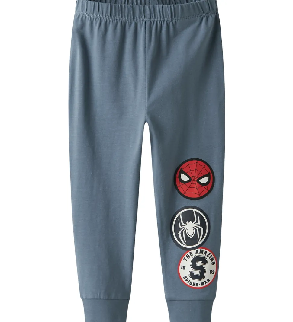 Smart Name It nattøj bestående af en natbluse og et par natbukser i støvet blå med Spiderman-print. Natblusen har en rund halsudskæring med en smal ribkant og lange ærmer. Natbukserne har en god elastik i taljen, og i benåbningerne er der fine brede ribkanter.