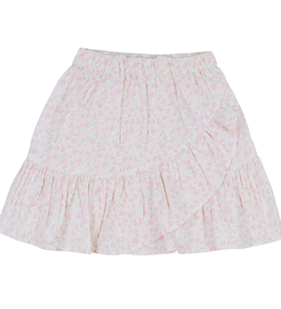 Skøn Name It nederdel i hvid med et fint, lyserødt blomstermønster. Nederdelen fra Name It har en elastisk talje og et karakteristisk slå-om-design med flæsekant forneden. Kombinationen af mønster og struktur giver et let og luftigt udtryk.