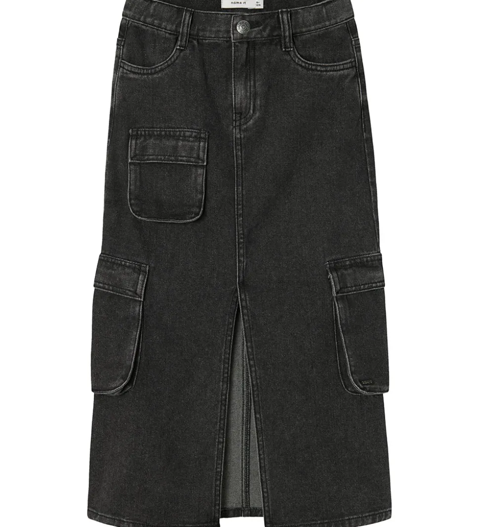 Lækker Name It nederdel i en klassisk sort denim med praktiske lommer og en trendy split foran. Designet giver en moderne look, der passer til forskellige anledninger.