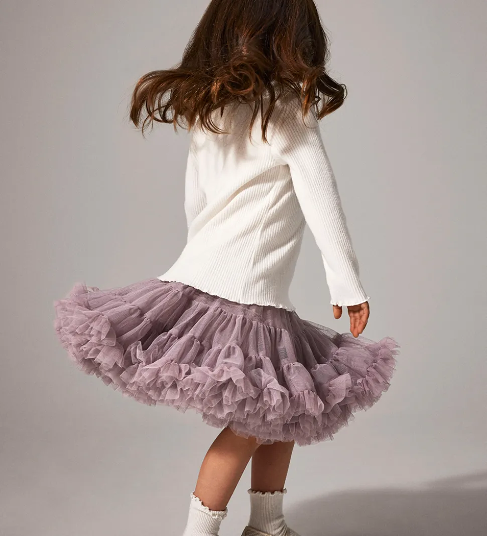Elegant Name It nederdel i en sart lyserød nuance. Name It nederdelen har en lagdelt struktur i tyl med en indvendigt justerbar elastiskkant i livet, der sikrer en god pasform.