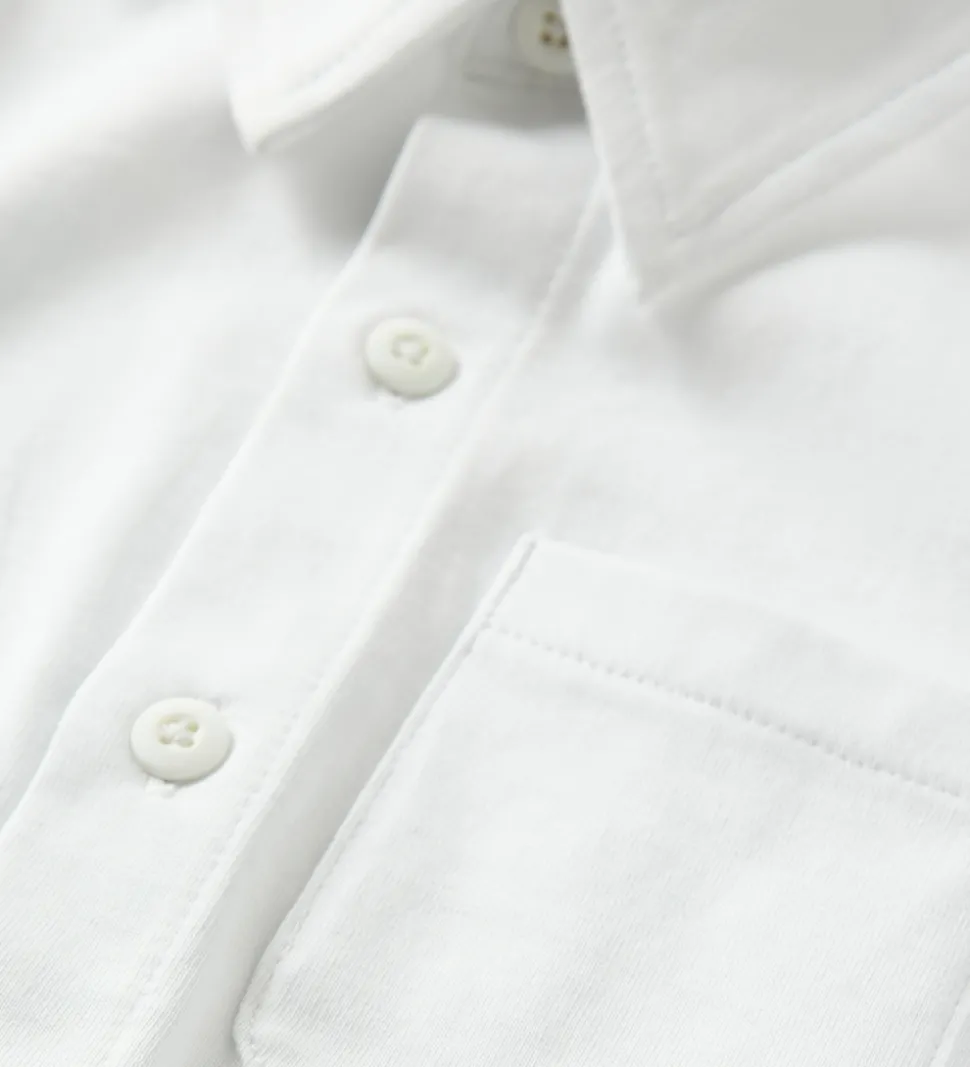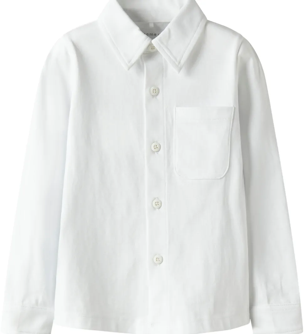 Klassisk Name It skjorte i ren hvid med lange ærmer og en enkelt brystlomme. Skjorten har en traditionel krave og lukkes med knapper foran. Name It skjorten er enkel i designet, hvilket gør den tidløs og passende til mange anledninger.