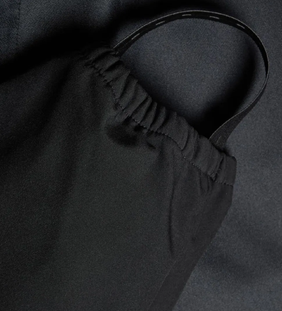Name It softshellbukserne har en bred elastikkant i taljen, med justerbare elastikker indvendigt. I benåbningerne er der smalle elastikkanter og elastiske stropper, som kan sættes under støvlerne. På knæ og numsen er der ekstra forstærkning, så de er slidstærke de mest udsatte steder.