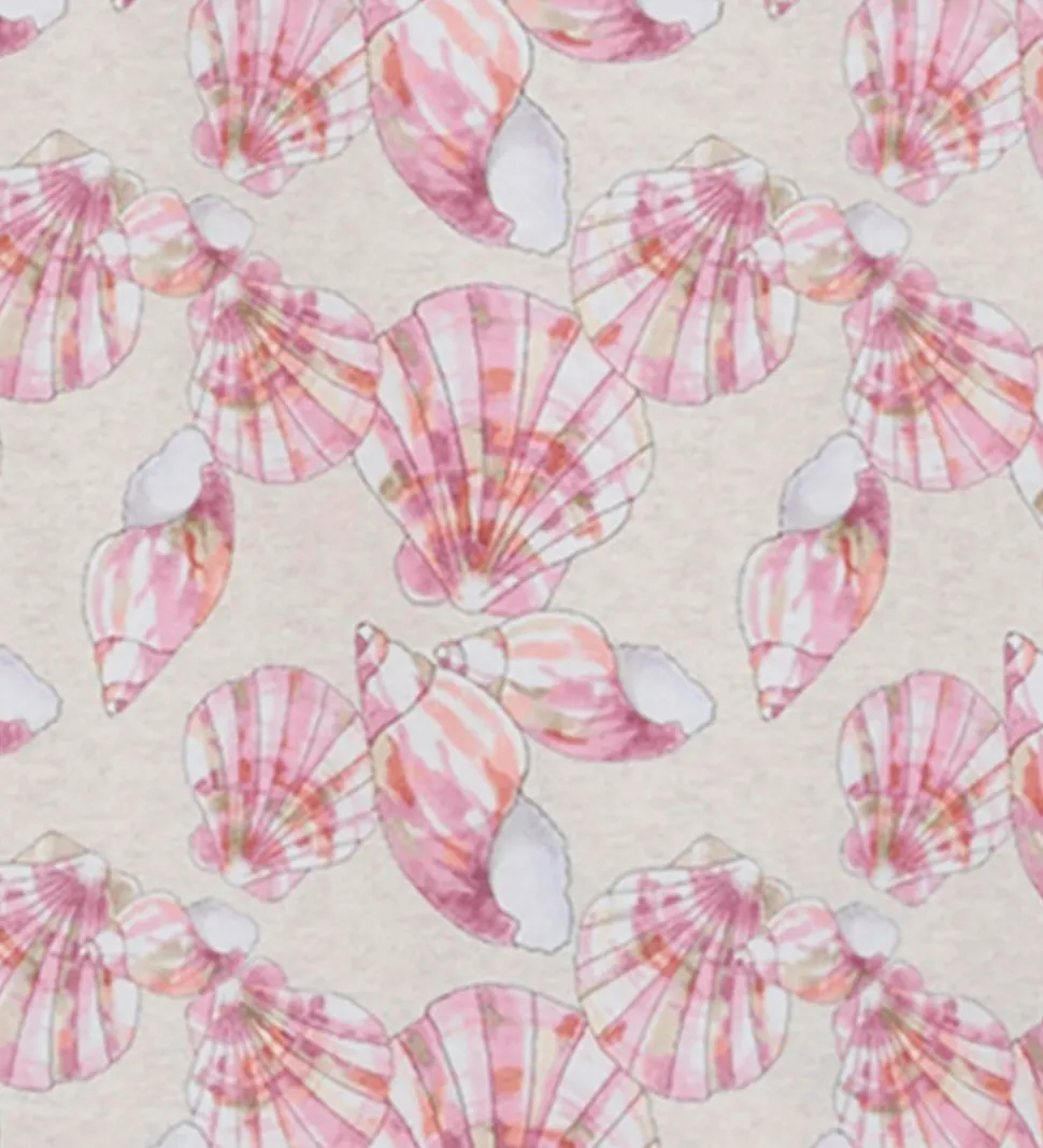 Fin sommerdragt i meleret beige, med et smukt allover print af forskellige muslingeskaller i hvid, beige og rosa nuancer.