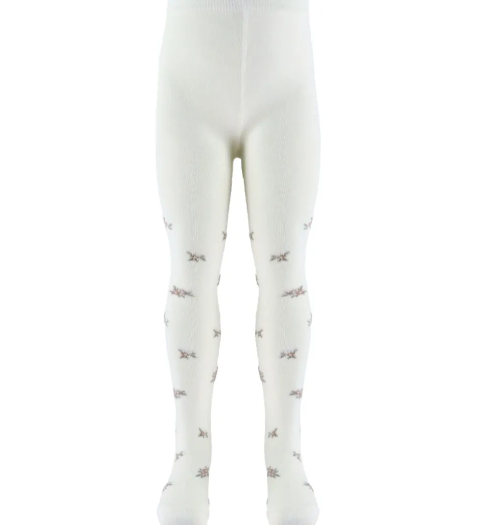 Elegante Name It strømpebukser i en klassisk, hvid farve med blomster i jacuard i lilla, rosa og grøn. Strømpebukserne har elastik i livet, hvilket sikrer, at Name It strømpebukserne sidder godt. Perfekt til forskellige outfits med deres subtile design.