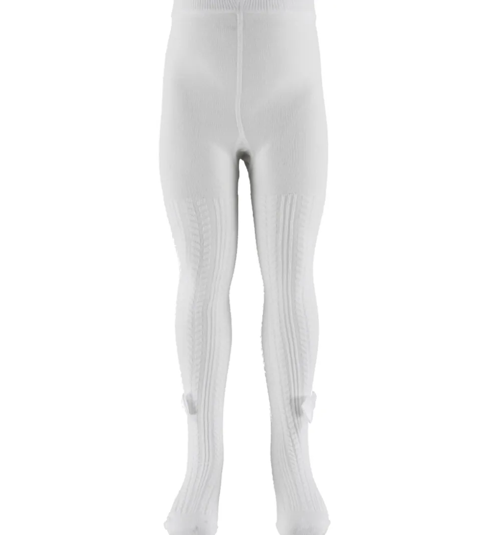 Stilfulde strømpebukser fra Name It i hvid med elegant struktur. Strømpebukserne er forsynet med en elastisk talje, der sikrer en god pasform. Name It strømpebukserne har en sløfedetalje ved anklerne.