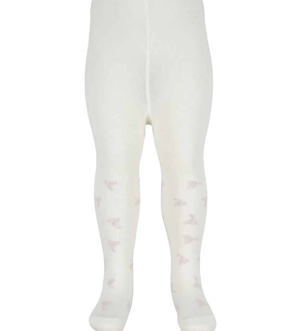 Lækre Name It strømpebukser i råhvid med print af små, rosa blomster. Strømpebukserne har en elastik i taljen og er fremstillet i en blød og elastisk kvalitet.