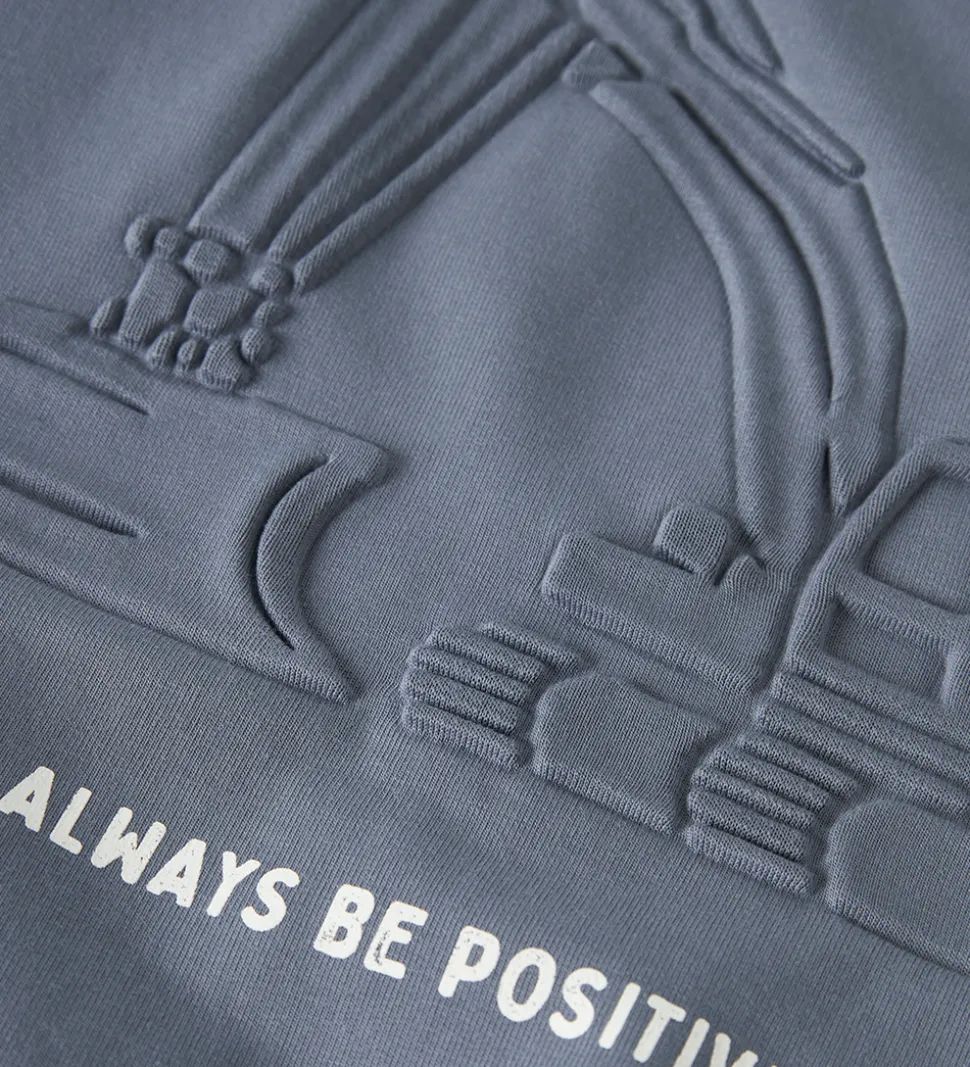 Elegant Name It sweatshirt i en afdæmpet, blå nuance med teksten “GOOD DAYS ON THE WAY” på brystet og en traktor præget ind i materialet på ryggen.