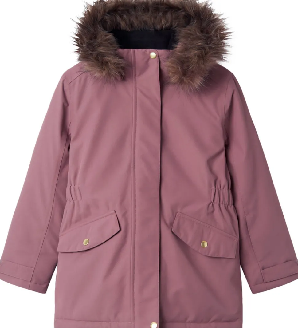 Flot Name It vinterjakke i rosa med en lækker kant af imiteret pels på hætten.
