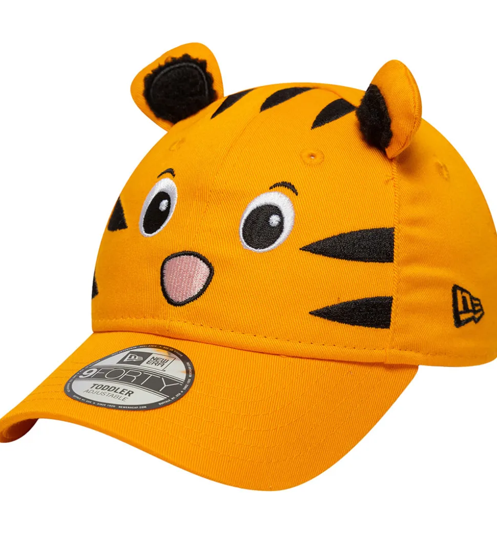 Charmerende New Era kasket i en markant orange farve med et sjovt tigeransigt og små ører. Kasketten har sorte striber på siderne, der bidrager til det livlige udtryk. New Era logoet er broderet i sort på siden.