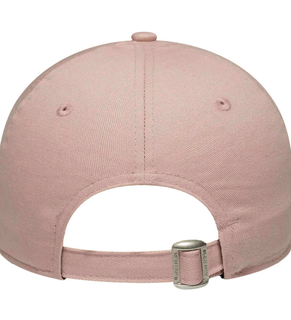 Attraktiv New Era kasket i en lys rosa nuance med en fin blomster detalje med orange perler. Forsiden er udsmykket med baseball holdet New York Yankees’ logo broderet i hvid på fronten. I venstre side er der et New Era logo.