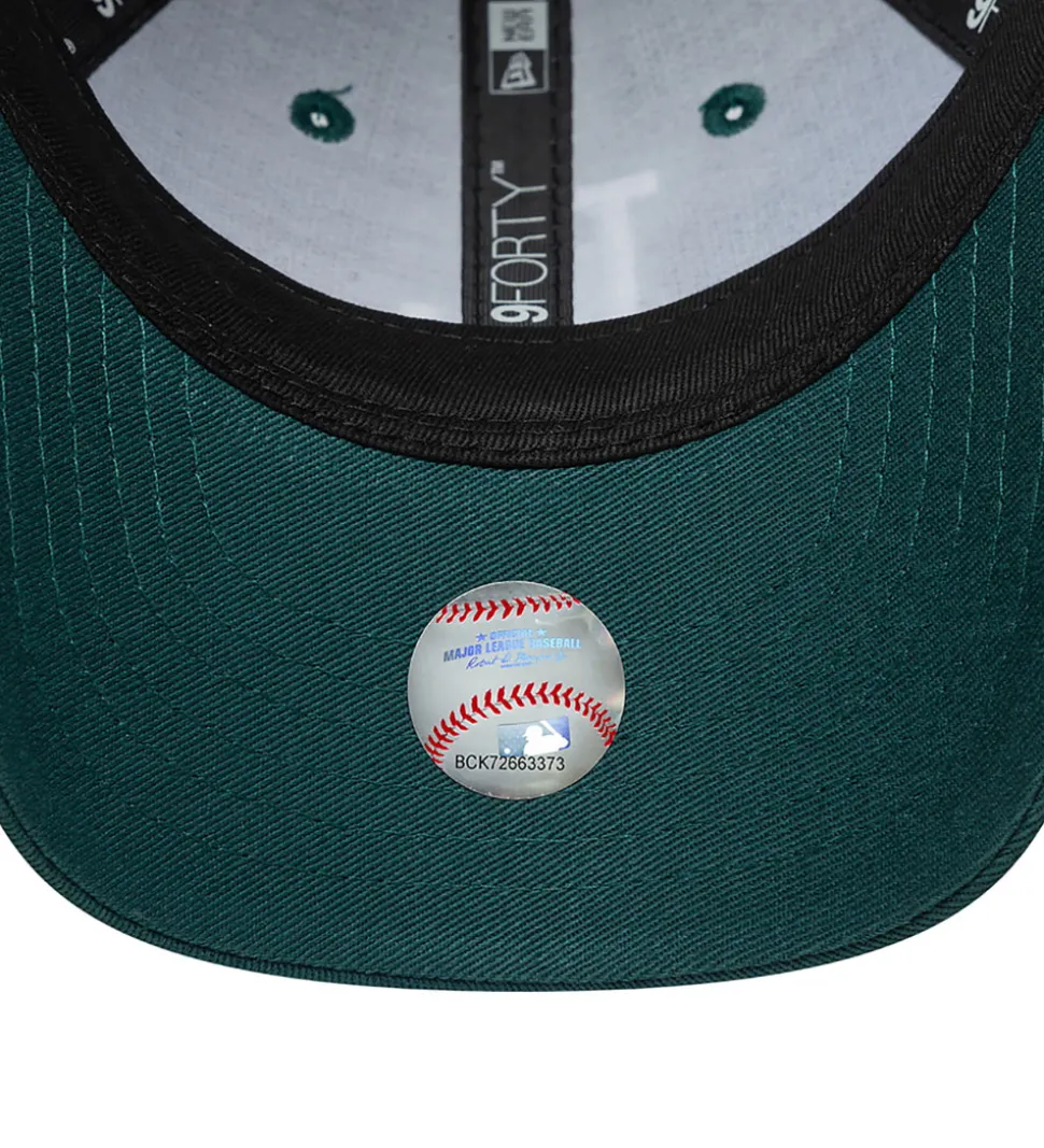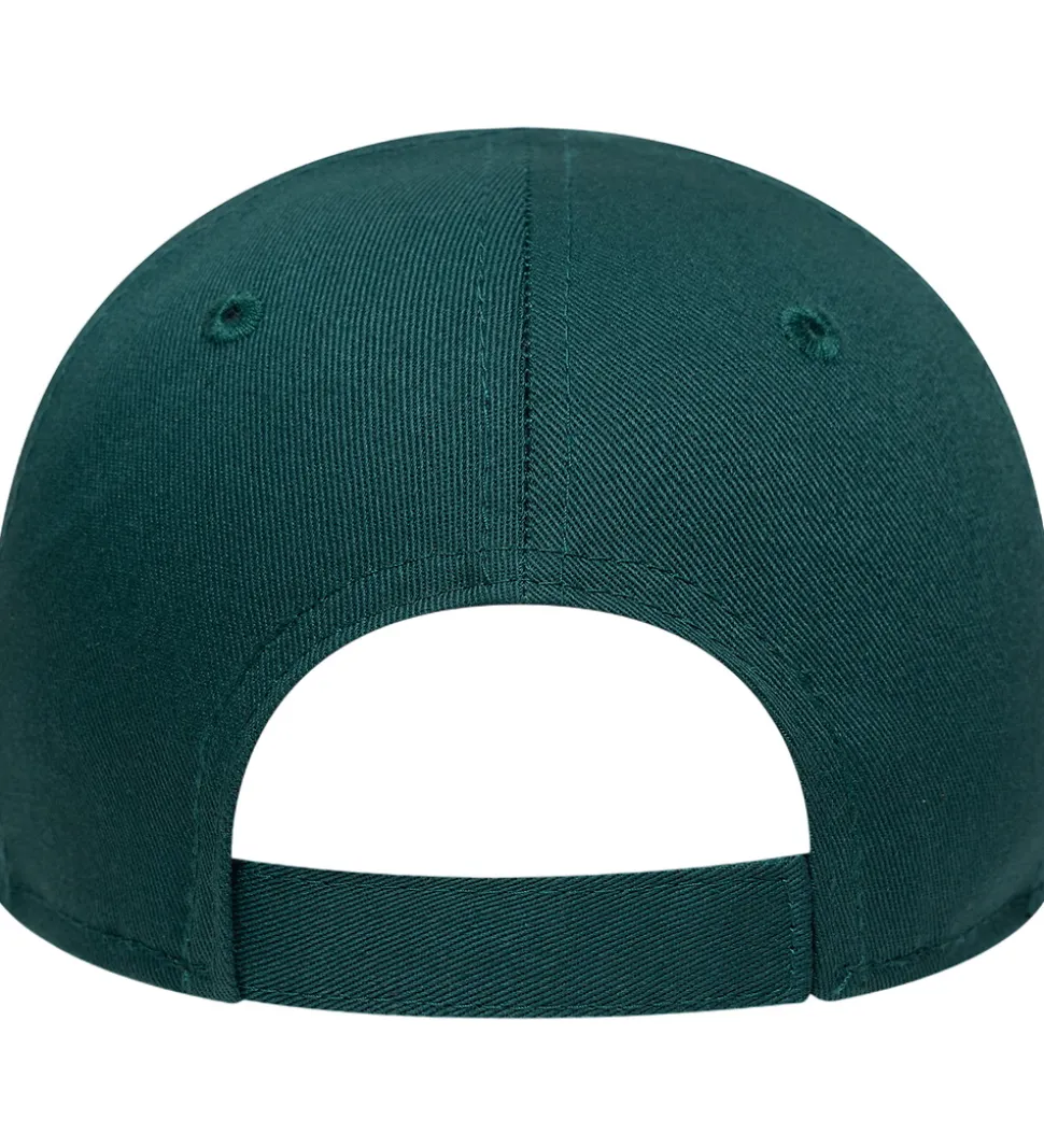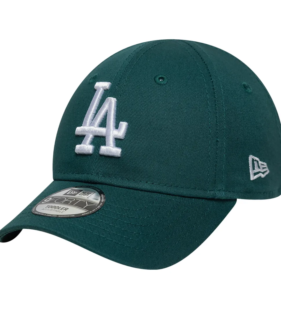 Stilfuld New Era kasket i mørkegrøn med et stort, broderet LA-logo i hvid på fronten. Kasketten har en buet skygge, og kan justeres i nakken med en velcrolukning.